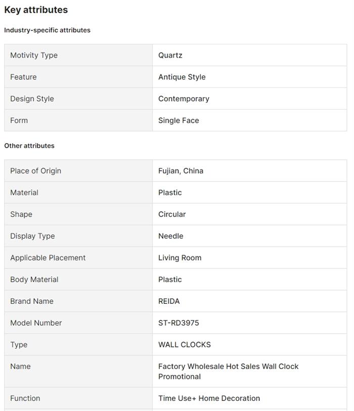 Factory Wholesale Hot Sales Big Size Plastic Wall Clock Instock Bargain Buys